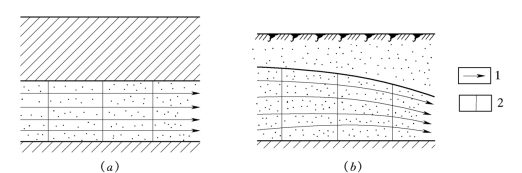 垂直于渗流方向的含水层截面叫过水断面,此断面包括岩石空隙和颗粒骨架在内的全部面积,用ω表示。实际过水断面是指该断面中重力水能流动的空隙部分,用ω′表示。