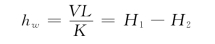 等式的右边实质上就是伯诺里(Bernoulli)方程中的水头损失值,即
