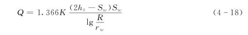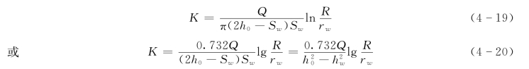式(4-17)中如引进抽水井的水位降深值Sw,由于Sw=h0-hw,则式(4-17)可写为