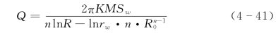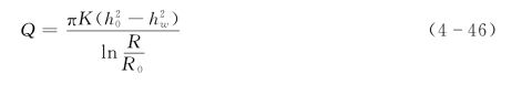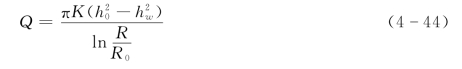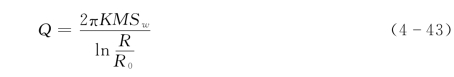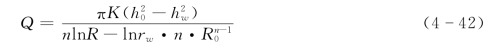 井群排列成方形或矩形时,设井群中心的降深为Sw,这样每一个单井的降深必然比它大。这时将矩形排列的井群看成是以R0为半径的大井。干扰井群的总流量Q的计算公式如下: