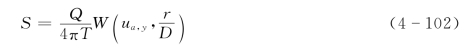(2)当时,考虑导水系数变化,在利用泰斯公式时,水位降深值需要按下式进行修正: