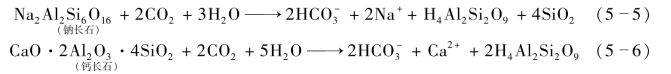 岩浆岩与变质岩地区,HCO3-主要来自铝硅酸盐矿物的风化溶解,如