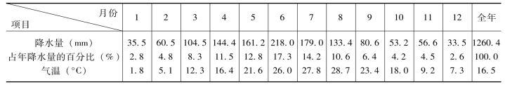 表6-1 东王村地区多年平均(1951~1999年)降水量及气温资料