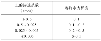 对采用上述方法取得的临界水力梯度进行地基渗流管涌稳定评价时,应考虑取一定的安全系数,对于管涌安全系数可取1.5。经安全系数修正后的水力梯度称容许水力梯度,表7-1列出根据渗透系数确定的容许水力梯度的参考数值。