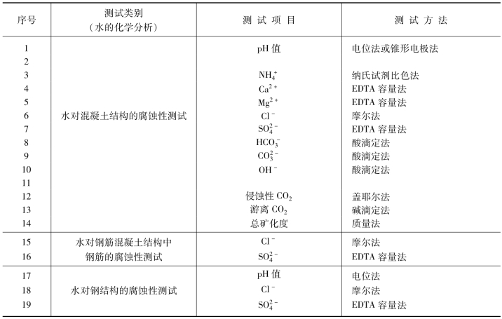 混凝土或钢结构处于地下水位以下时或者处于地表水中时,应取地下水或地表水作水的腐蚀性测试。此外,当地下水位季节性波动可能浸及构筑物时,也宜取水样作腐蚀性测试。