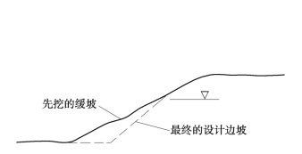 在国外采用明沟排水时,挖方工程一般由周边开始,在必要时可先修一个缓坡,待地层中的储存水消耗后,再按设计修整边坡和开挖明沟(图9-3)。