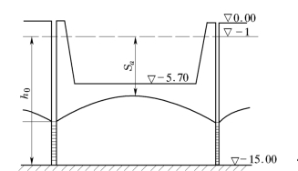 【例】 某处拟建大楼设地下室,基础面积46m×36m,埋深5.70m。基础埋在K=7.20m/d的细砂含水层中,施工前必须进行基坑降水,基坑降水水文地质剖面示意图如图9-13所示。试进行基坑降水设计计算。
