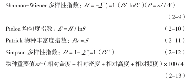 式中,a 为样地A 的物种数,b 为样地B 的物种数,c 为样地A 和B 的物种总数。