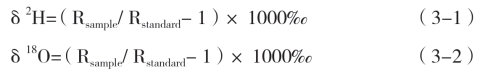 式中,δ2H、δ18O 分别为对应样品的稳定氢、氧同位素值,Rsample 和Rstandard 分别为样品和国际通用标准物中元素的重轻同位素丰度之比(18O/16O)。测定精度:δ2H: ± < 1‰,δ18O: ±<0.2‰。
