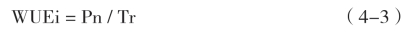 采用Li-6400 便携式光合测定系统于9:30 至12:00 或15:00-17:00 分别测定4 种优势植物的净光合速率(Pn)、蒸腾速率(Tr)、气孔导度(Gs)、胞间CO2 浓度(Ci)、叶片温度(CTleaf)等光合参数。在每个采样点选择完全展开且生长良好的植物叶片,每种植物测定5 株,取其平均值,计算瞬时水分利用效率: