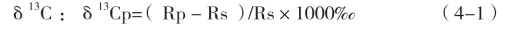式中,Rp 、Rs 分别表示代表植物组织样品和标准化石PDB 的13C /12C。