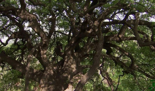 河南省荥阳浮戏山中,有一处青山环绕、松柏叠翠的地方,被称为环翠峪。漫山遍野的绿色中,一棵1500多年的古橿树格外与众不同。12米高、近4米粗的大树生长在三口窑洞的顶部,像一把巨伞,为下面的院落遮阴送凉。