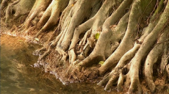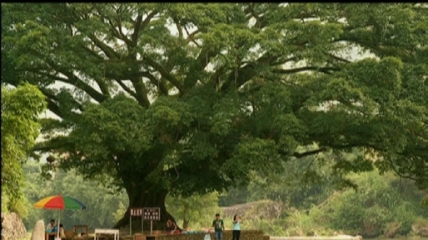 榕树适合在高温多雨、空气湿度比较大的环境下生长,它的侧枝和侧根都非常发达,哪里有水,哪里有养分,它就伸到哪里。正是因为有了充足的养分,云水谣的古榕树群才会生长得如此茂盛,高大挺拔的树干给人一种威严、神秘的感觉,而随风飘扬的树须则让老榕树平添几分“仙气”,在当地许多村民的心目中,榕树是最有灵气的“神树”。小孩儿如果经常生病,父母就会让孩子认榕树公干爸、干爹爹,从此身体康健。