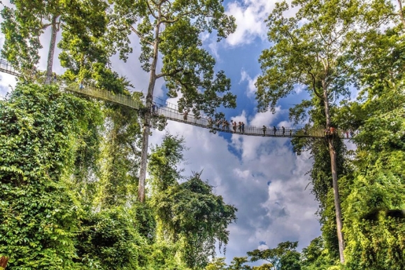 这条长度500多米的“空中走廊”,连接了几十棵望天树,距离地面最高处有36米,是目前中国架设在大树上最高的“空中走廊”。站在这样的“走廊”上,呈现在眼前的画面让人十分震撼。遮天蔽日的热带雨林被踩在脚下,而在地面上看起来若隐若现的望天树树冠,也可以清晰地观测到。因此,这条“空中走廊”也成为了一个著名的景点,很多胆大的游客来到这里就是为了体验行走在热带雨林上空那种惊心动魄的震撼。