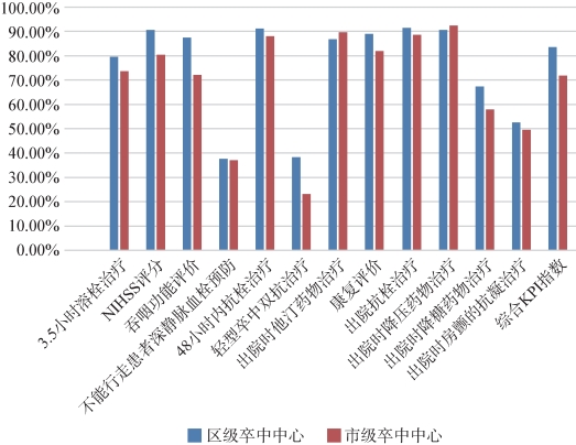 图2-9 2019年度上海市级卒中中心vs.区级卒中中心KPI比较