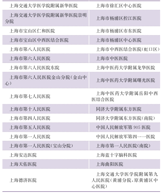 2019年上海市神经内科临床质量控制中心质控督察医院清单