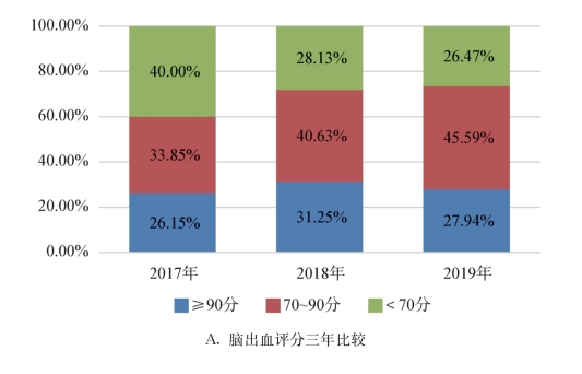 脑出血总体评分相比缺血性脑血管病仍较低,病史质量有待进一步提高;各医院之间差距较大。