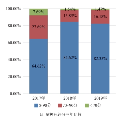 建议各医院强调康复评价与实施的重要性。早期康复治疗可改善缺血性脑血管病患者远期预后,即使对于轻症患者,给予合理的康复评估和指导,也有利于患者早期功能痊愈。同时建议不断更新卒中救治知识,提升对新的循证推荐的更早接纳与开展。