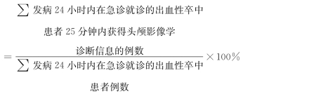 定义:单位时间内,发病24小时内到急诊就诊行头颅影像学检查的出血性卒中患者中,25分钟内获得头颅CT影像学检查诊断信息的患者所占比例。