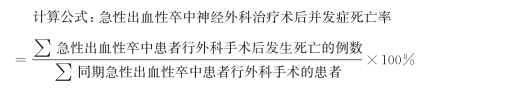 时间内,急性出血性卒中患者行外科手术后死亡例数占同期急性出血性卒中患者行外科手术治疗的患者比率。