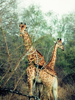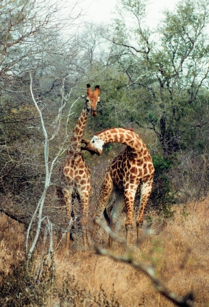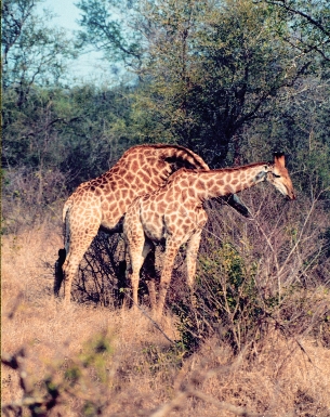 “小斑”走过斑马的身边,沿着林间的兽道向深处走去。当它们只留下臀部时——浅棕色的图案,我相信它们就是我昨天看到的,触动心灵的那两只长颈鹿。