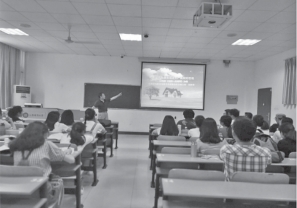 在江西财经大学的人文学院,近年来一直倡导和推行的“实务导师进课堂”实际上也已经形成制度,从新闻学专业课堂到广告学专业课堂,从文化产业管理专业课堂到社会学专业课堂,都有来自业界实体的实务精英讲学,给学生带来弥足宝贵的业界实务前沿知识(以下图片,拍摄于2019年5月17日上午文化产业项目管理课堂。江西省电影家电视艺术家协会驻会副主席张跃明给文化产业管理专业学生讲学时)。
