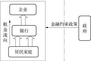 进而,我们把政府实施金融约束政策的租金在居民家庭、银行和企业之间的效应通过图3-3展示出来。图3-3说明,金融约束论的核心是政府通过一系列政策,为银行和企业创造获得租金的机会。但是,租金却是从居民家庭中流出,先流经银行、再流向企业。显然,这种租金机制的直接受害者是居民,而银行和企业都是受益者。