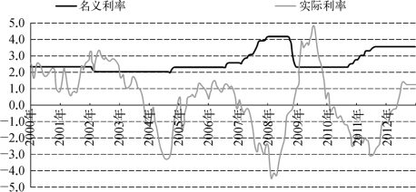 图5-1 2000—2012年中国的名义利率与实际利率走势