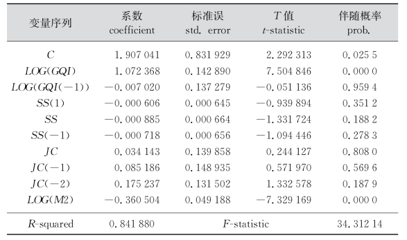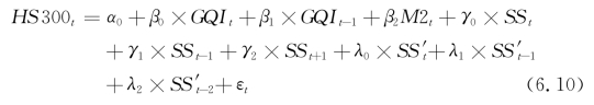 以沪深300(HS300)为因变量,以国企指数(GQI)为自变量,以供给冲击作为待检验的自变量,建立回归方程如下: