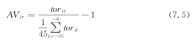 我们按照Field Hanka(2001)的方法,将[-50,6]天的平均换手率作为基准,定义第τ日的异常换手率AViτ如式(7.5):