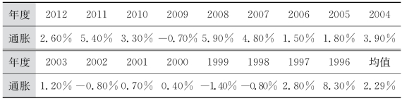 表8-1 1996—2012年度中国的通货膨胀率