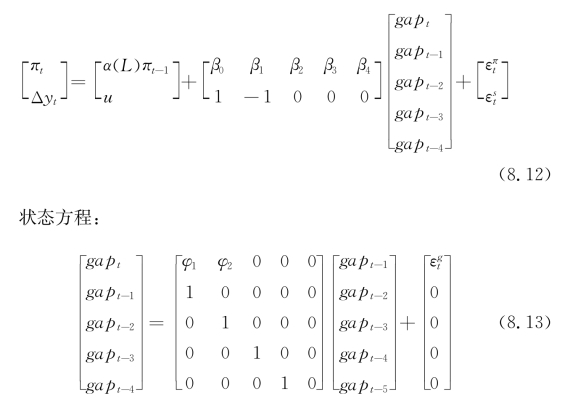 其中,π是通货膨胀,是滞后多项式,L是滞后算子,επt符合正态独立同分布,方差为