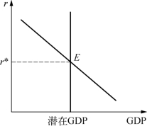 尽管存在各式各样的关于自然利率的定义,但以Laubach和Williams(2003)为代表的一些经济学者所提出的定义最为流行,他们在价格黏性的假设下,将自然利率定义为在不存在对需求的暂时性冲击时,对应于实际GDP等于潜在GDP时的实际短期贷款利率。同样,潜在GDP被定义为在不存在对供给的暂时性冲击时,与稳定的物价通货膨胀相对应的产出水平(见图8-2)。因此,自然利率就是在不存在对供给与需求的暂时性冲击时,与稳定的通货膨胀相对应的实际短期贷款利率,而显然此时的货币政策也是中性的。