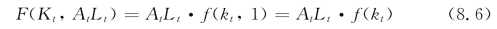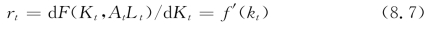 其中,kt≡Kt/At Lt为实效劳动资本。企业的最优投资行为应该满足实际利率rt等于资本的边际生产率,即:
