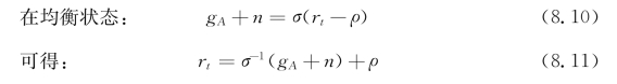根据式(8.1)以及长期自然利率的定义可知,r等于资本的边际生产率,即长期自然利率。若假定相对风险规避度近似为1,而且由于时间偏好率明显小于技术进步率,可以认为长期自然利率与趋势增长率或潜在增长率gA+n近似一致,即长期自然增长率≈潜在增长率。显然,技术变迁、劳动人口的增减不仅直接导致潜在增长率发生变化,而且也是引起长期自然利率变动的主要原因。