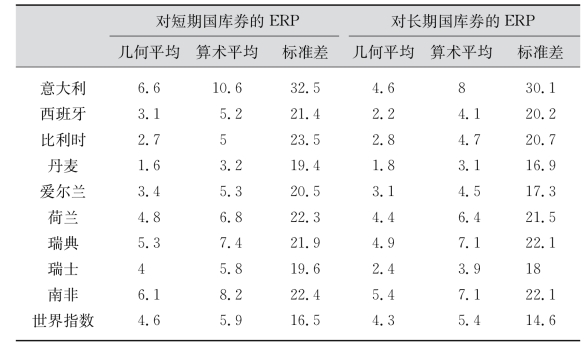股权风险溢价(equity risk premium,简称是ERP)就是普通股权收益率与无风险证券(政府债券)收益率的差别。