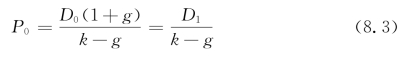 由上可知,Gordon模型把股票的价值与下一时期的预期股利、股票的收益率和预期股利增长率联系起来,其具体公式可见式(8.4):