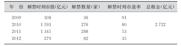 表8-15 中小板市场IPO限售股的统计数据及租金测算