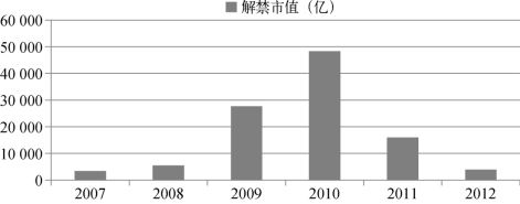 从图8-9可以看出,全部IPO限售股的解禁的时间段主要是2009—2011年,与2008年和2009年“大小非”解禁高峰不同的是,2010年迎来首发限售股的解禁高峰,2010年全年IPO限售股的解禁市值达48 310亿元。