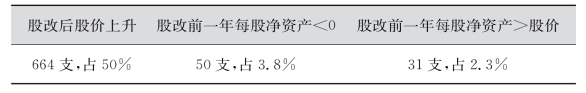 根据前文分析,租金测算的基础在于流通股股东实际得到的对价与应得到的合理对价的差,合理对价率的计算公式为式(9.8)。在1 334个股改样本数据[2]中,删去3个缺失股权结构及非流通股比例等信息的样本,删去12个股改前、后最少一年没有收盘价信息的样本[3],这12支股票为股改前一年和前三年的每股净资产均为负的ST股票。经过筛选得到的1 319个股改样本的关键信息如表9-2。