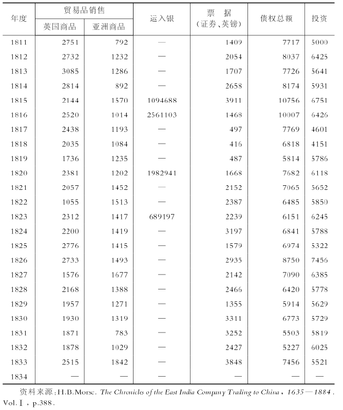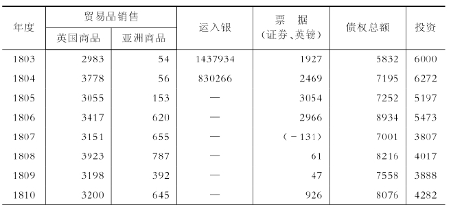 因此,从印度向中国贸易输出的东印度公司,从和英国本国的关系上来看,主要以亚洲很难找到销路的毛织物为中心进行贸易,所以,实质上亚洲贸易主要由地方贸易商人来担当。这种单方面的贸易使公司贸易活动陷入不安定状况之中,公司便利用票据垄断运用这一特权,管理着地方贸易商人向本国的汇款。另一方面,作为对鸦片专卖制的铺垫,不得不依靠地方贸易商人对中国进行贸易。在亚洲,以印度、中国为中心而展开的白银经济使白银进口成为必要,而另一方面,西洋对亚洲产品的进口也成为必要。由于形成这样的一种关系,所以从16世纪以来,始终存在着白银向亚洲的流入,新大陆的白银也大量流入亚洲。从西洋情况来看,来自新大陆的白银在被用于亚洲贸易决算的同时,还在西洋发挥了稳定银价的作用。但是,从18世纪末到19世纪初,新大陆的白银进口并无增长,但另一方面,欧洲对货币的需要高涨,使得此前的东西白银关系趋于崩溃。其结果,正像表3-16所见到的,英国东印度公司开始将贸易重点由东西直接贸易转到亚洲内的地域贸易,其账目则在印度殖民地与英国之间作调整。在此之后,东印度公司亚洲贸易垄断权的废止,发端于对东印度公司侵害亚洲地域贸易商人利益的批判,从中也能够看出鸦片战争使得这一地域贸易的利害关系表面化了。以荷兰东印度公司为首,英国东印度公司以及在亚洲的英国商社,从事的都是所谓亚洲区域内的转口贸易,这是众所周知的事实,这正是由于以往亚洲区域贸易网作为背景的存在才得以实现。例如,前者的日中之间的白银、生丝贸易,后者的中印贸易等都可称其为代表。在那里,印、中成为两大轴心,沿着东南亚及东亚展开着贸易关系,人们与印度商人及中国商人在各地进行贸易。