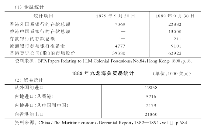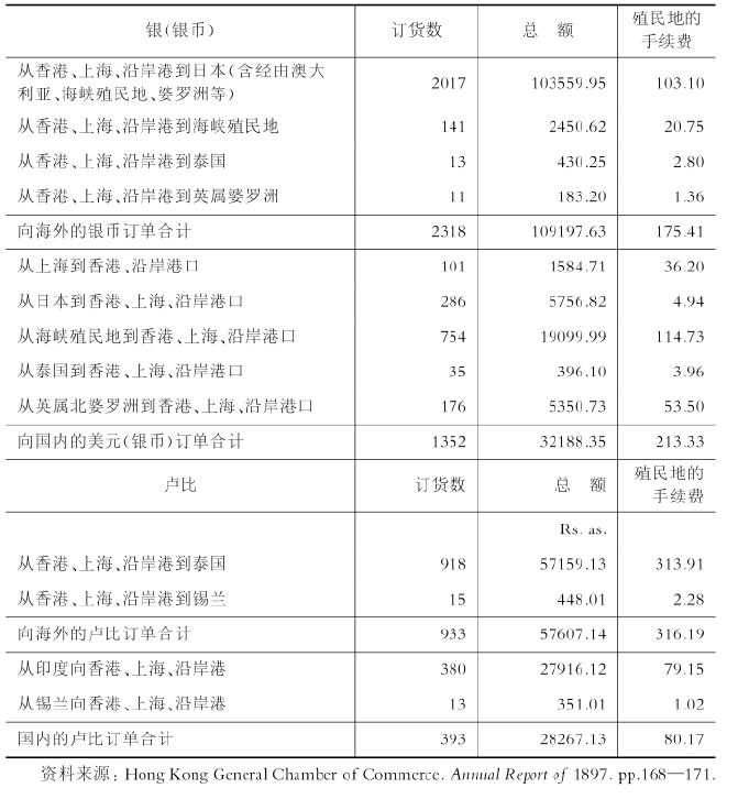 我们也能够确认香港所发挥的金融作用的重要性。如果香港采用金本位,中国就存在着越过香港直接与其他外国交易的可能。对此,以香港元为媒介的中国在决算上是二重汇兑制度,虽然有人想省略这看起来很不方便的方式,但是香港提供的转口港与用于分配的贸易地动能,却是近邻任何港口也不能代替的。在原有以香港元为中介进行汇兑贸易的二重汇兑作用中,再加上金、银汇兑关系,就成了金建贸易与银建贸易共同的中介,以及金建之间贸易和银建之间贸易又相互为决算的中介。更由于币材贸易的出现,进一步增强了资金的吸引力和流通力,其中对于从日本来的白银、黄金的吸收成了币材流通的一个重要环节。日本从19世纪后半期开始模仿当时成为亚洲“国际通货”的墨西哥元,发行贸易一元银,发行总额为1.6亿余日元,大约2/3主要在香港、新加坡流通。另外,由于驻日外国银行主要进行进口汇兑,余下的日元资金又回流到了上海和香港。