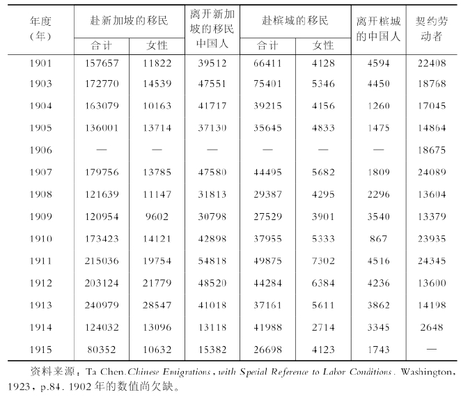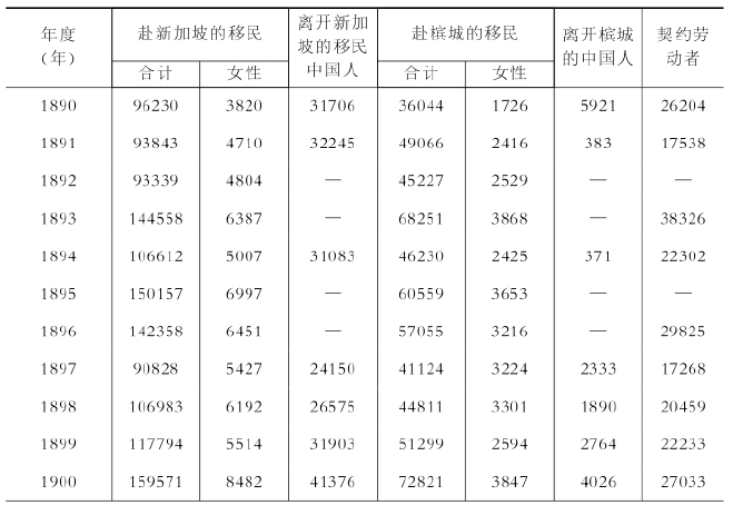 表3-28 赴新加坡、槟城的中国移民(单位:人)
