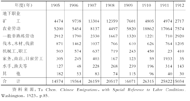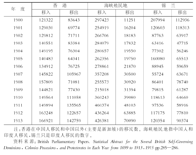 表3-26 香港、海峡殖民地、锡兰的移民数(1900-1913年)(单位:人)