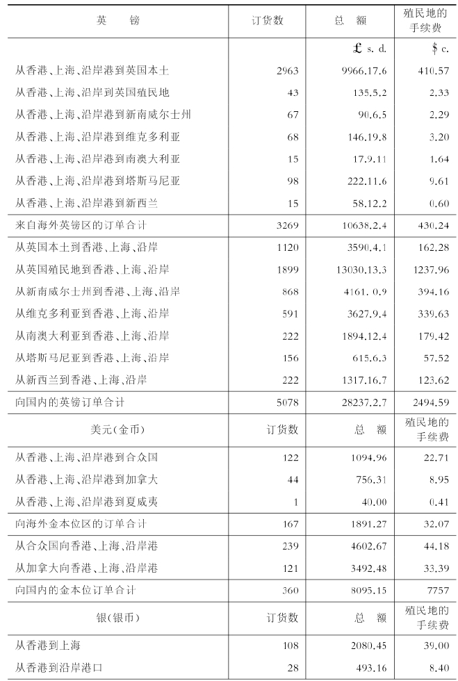 香港的金融活动是以英系银行为中心进行的,所以香港当局所管辖的以邮政业务为中介的金融活动并没有占很大的比重。但是,在不能具体把握银行金融活动状况的情况下,尽管量的比重很小,通过邮政汇兑的动向,还是能够作为一个缩影来推测香港的对外金融活动的。