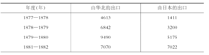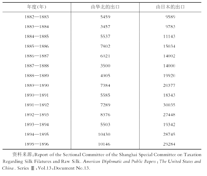 生丝出口的情况与茶叶非常类似,由于与日本的出口竞争,使得中国在19世纪80年代初失去了此前的独占地位。