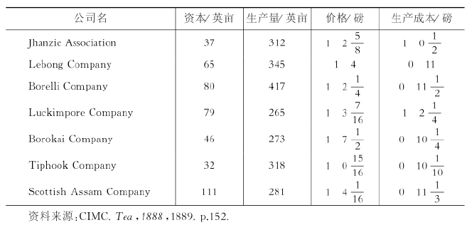 表4-10 印度阿萨姆邦地区的茶叶栽培事业(1887年)