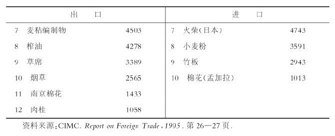 表4-2 中国主要进出口产品(1904年)