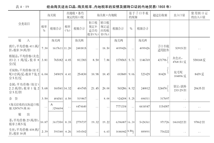 以上三项可以通过各自对应的证明书操作来进行自由变换。然而,与此同时,在税则的运用上,针对外国贸易与内陆贸易的各种情况以及两者课税面的优劣关系,外国方面与中国方面对以上的相互不分离的问题都提出了各自的不满、批评与建议。
