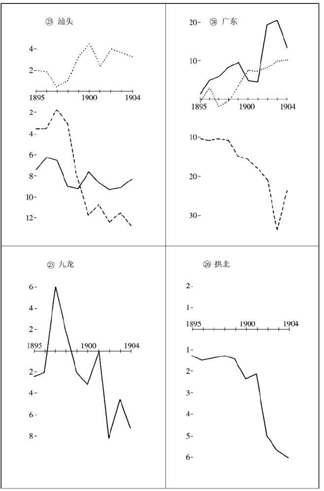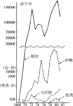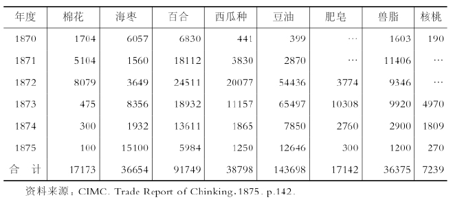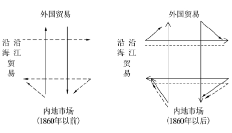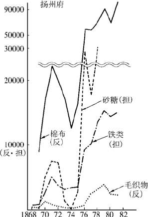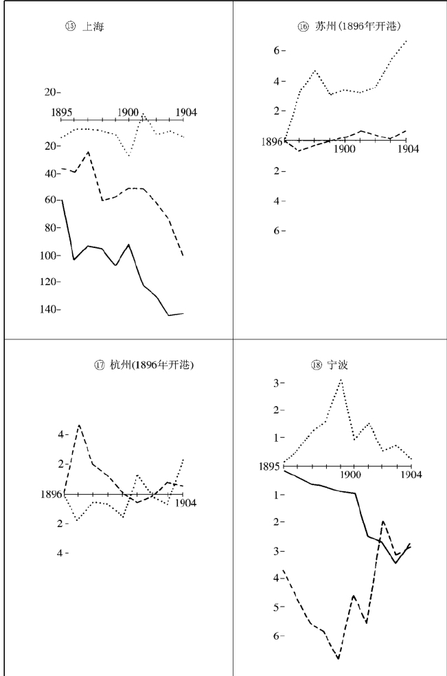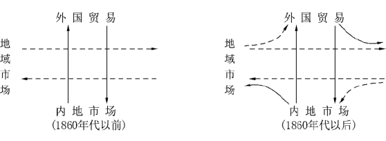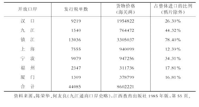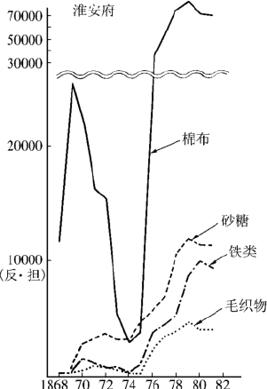 也就是说,19世纪60年代之前,经由海关的外国贸易,不必经由地域市场就可以在内地市场进行进出口贸易。自从海关机能被扩充的19世纪60年代以后,通商口岸就在连接地域市场与内地市场上发挥了媒介作用。当然,如前所述,这种向内地市场的渗透也产生出了很多摩擦。